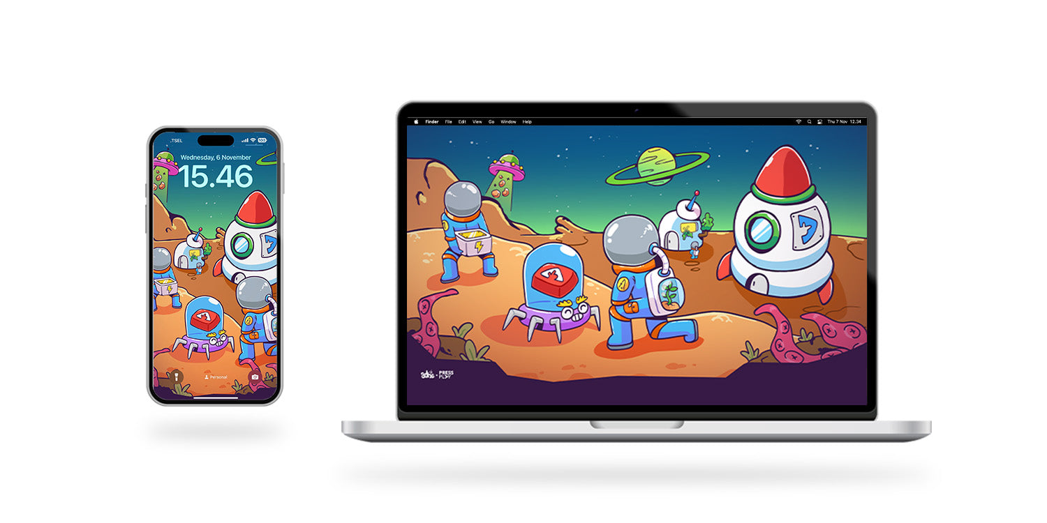 "Saya mencoba bercerita tentang sekelompok astronot Press Play yang mencoba mengeksplor planet Mars setelah misi rover NASA. Mereka mengambil beberapa sampel material di Mars dan mengubahnya jadi keycaps yang keren." - @adhee.pratama